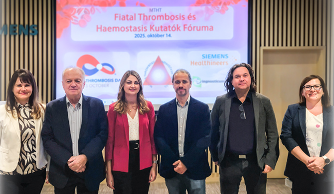 Beszámoló a sikeresen megrendezett Fiatal Thrombosis és Haemostasis Kutatók Fórumáról2025. október 14-én került megrendezésre az MTHT Fiatal Thrombosis és Haemostasis Kutatók Fóruma Budapesten. 40 év alatti fiatal kollégák nyújtották be az absztraktjukat a thrombosis, haemostasis és vaszkuláris témakörökben, melyek a Haematológia-Transzfúziólógia folyóiratban jelentek meg.  |