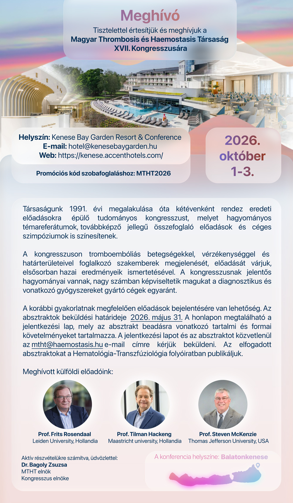 2015. május 16-án az MTHT tudományos szimpóziumot rendez a thrombosis és haemostasis területén klinikai és alapkutatásokat folytató, valamely Doktori Iskolához tartozó munkacsoportok bemutatkozására. Helyszíne: Debreceni Akadémiai ...